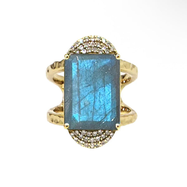 TAT2 Design - Gold Kosor Emerald Cut Labradorite & Crystal Ring