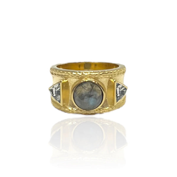TAT2 Design - Gold Band Labradorite & Coin Tre Ring