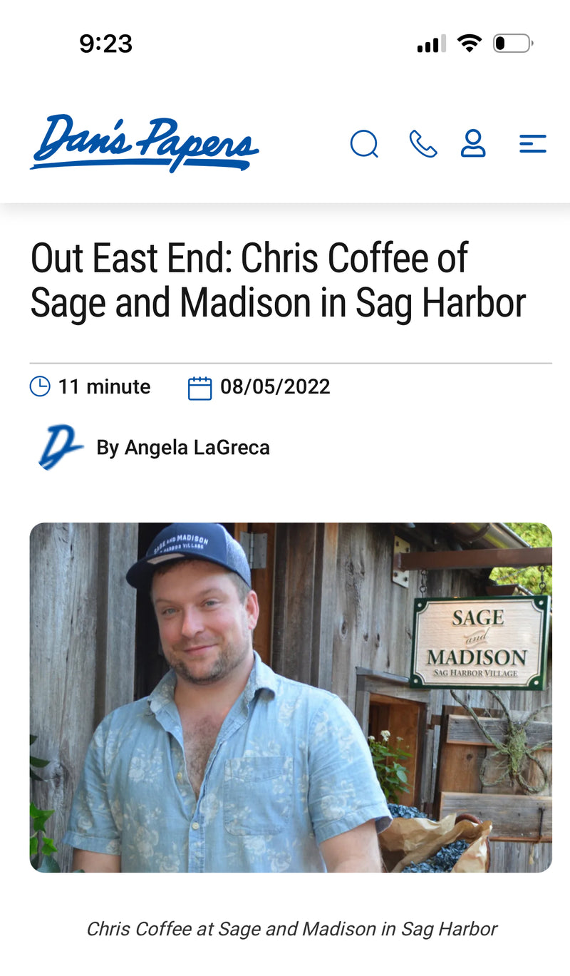 "Sage & Madison, the brainchild of local entrepreneur Chris Coffee, is a charming and quaint retreat in Sag Harbor village that pays homage to the past while looking toward the future. The historical property encompasses chic guest suites for short stays and a high-end gift shop meets coffee spot, which is curated with finds from far and wide. The Daily caught up with the man behind the magic over a cup of his favorite Mariage Frères tea to get the lowdown."