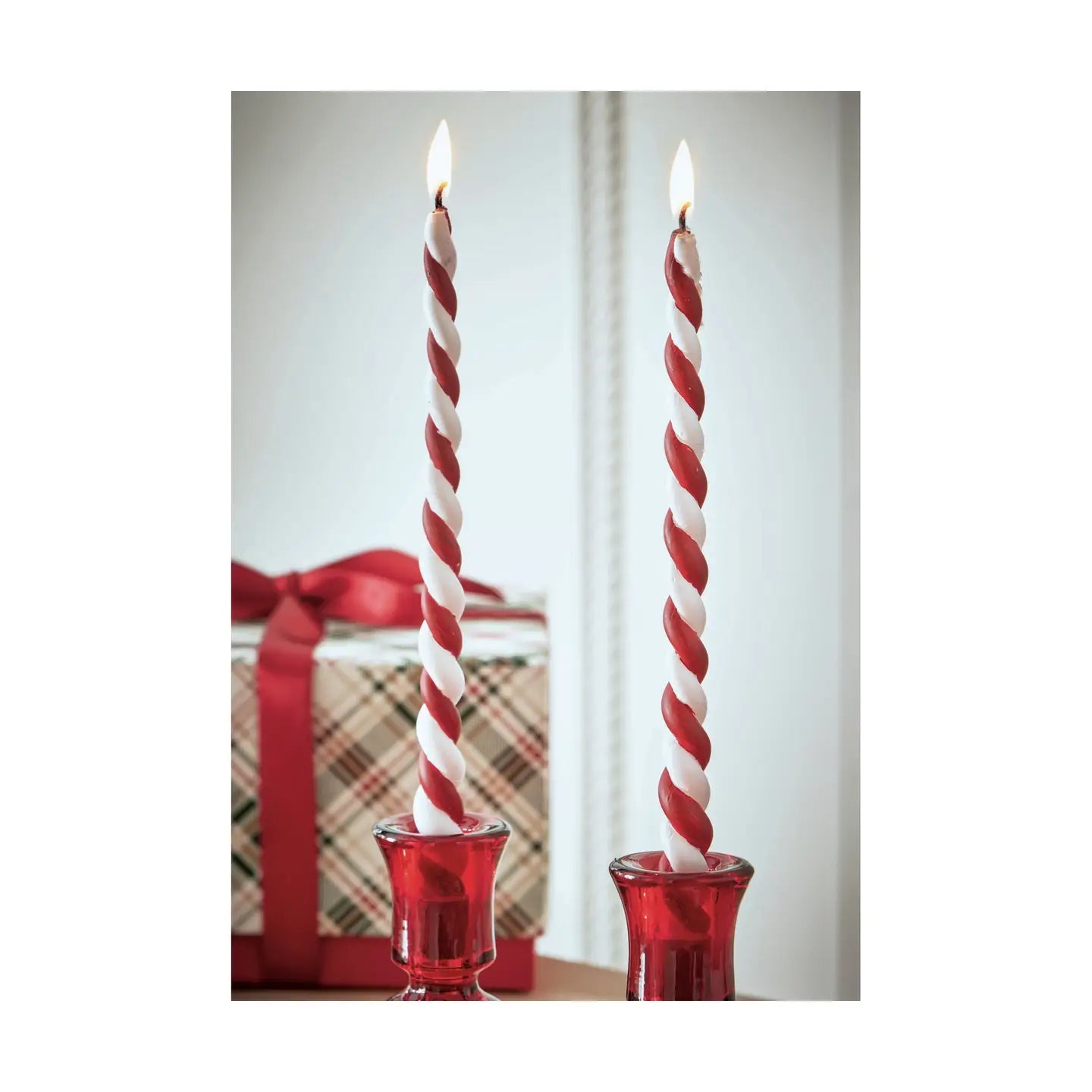 This set of 2 red christmas twist taper candles is a beautiful and festive addition to any christmas decor. the candles are made from 100% paraffin wax and feature a twisted shape in a classic red color