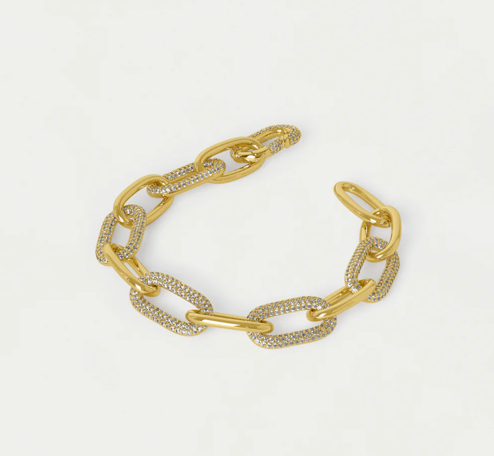 A mix of high-shine links and pavé-adorned forms come together in this standout bracelet crafted for solo wear and statement stacks alike.