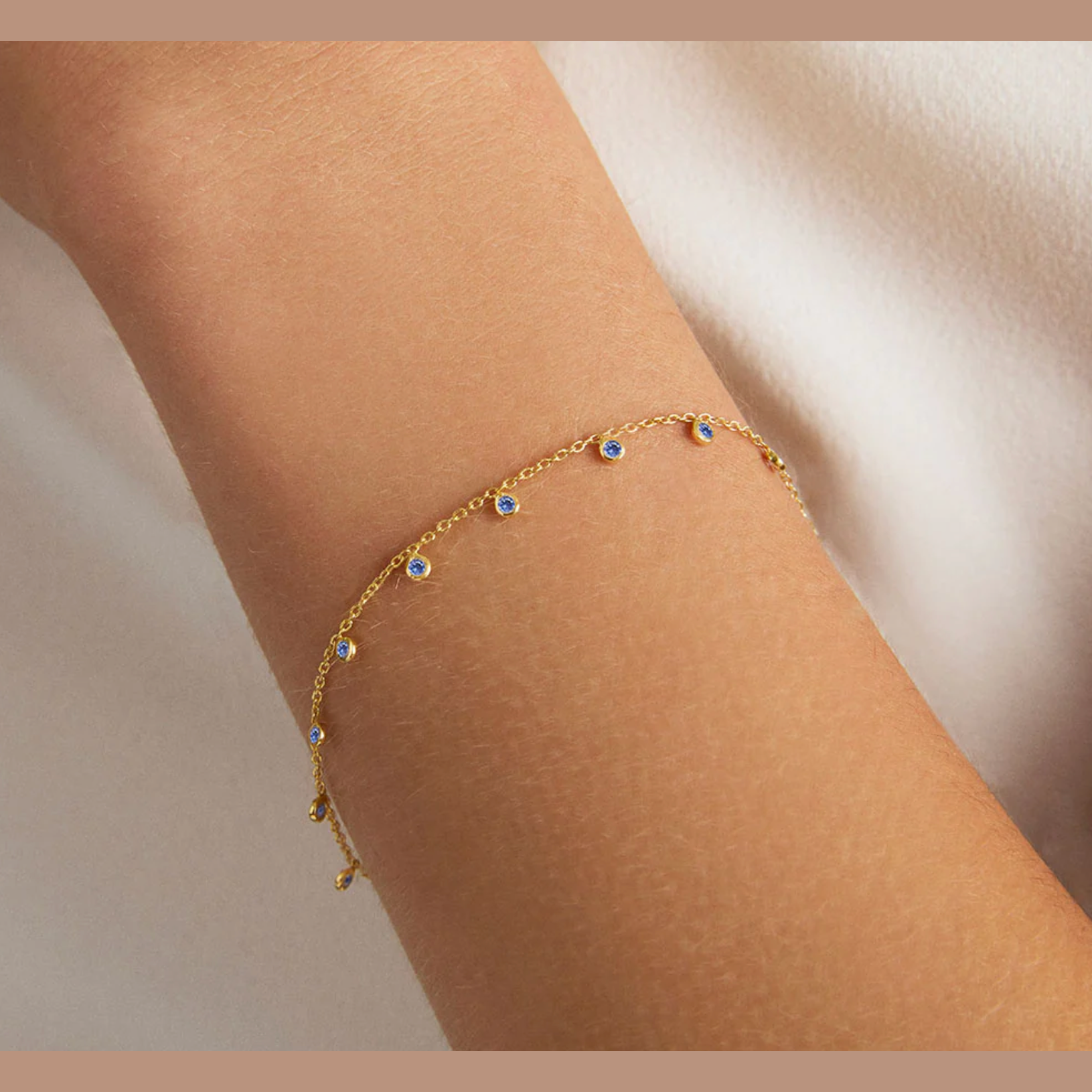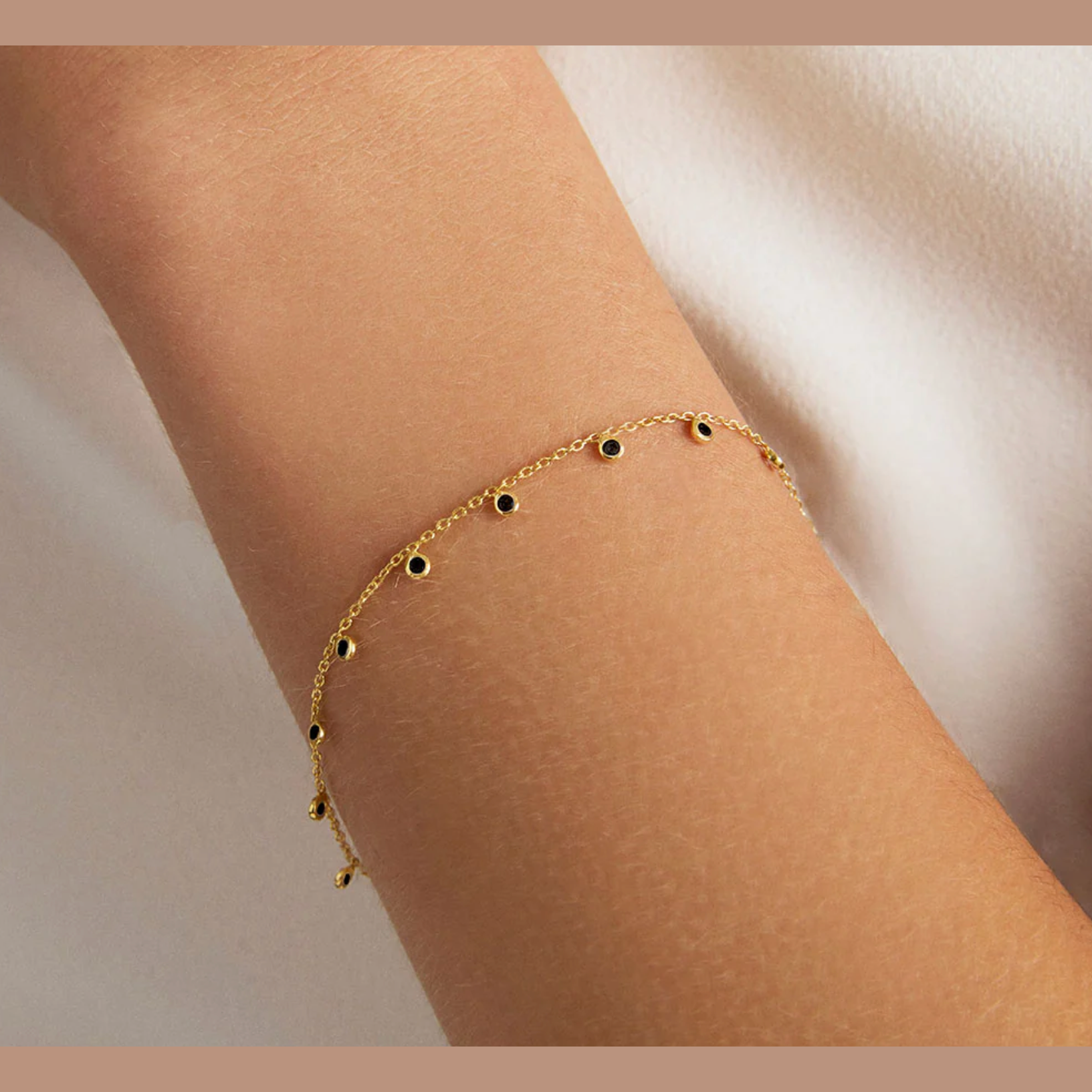 Add a sense of playfulness to your stack with this charm bracelet that features small, wear-with-everything gemstones suspended on a subtle gold chain.