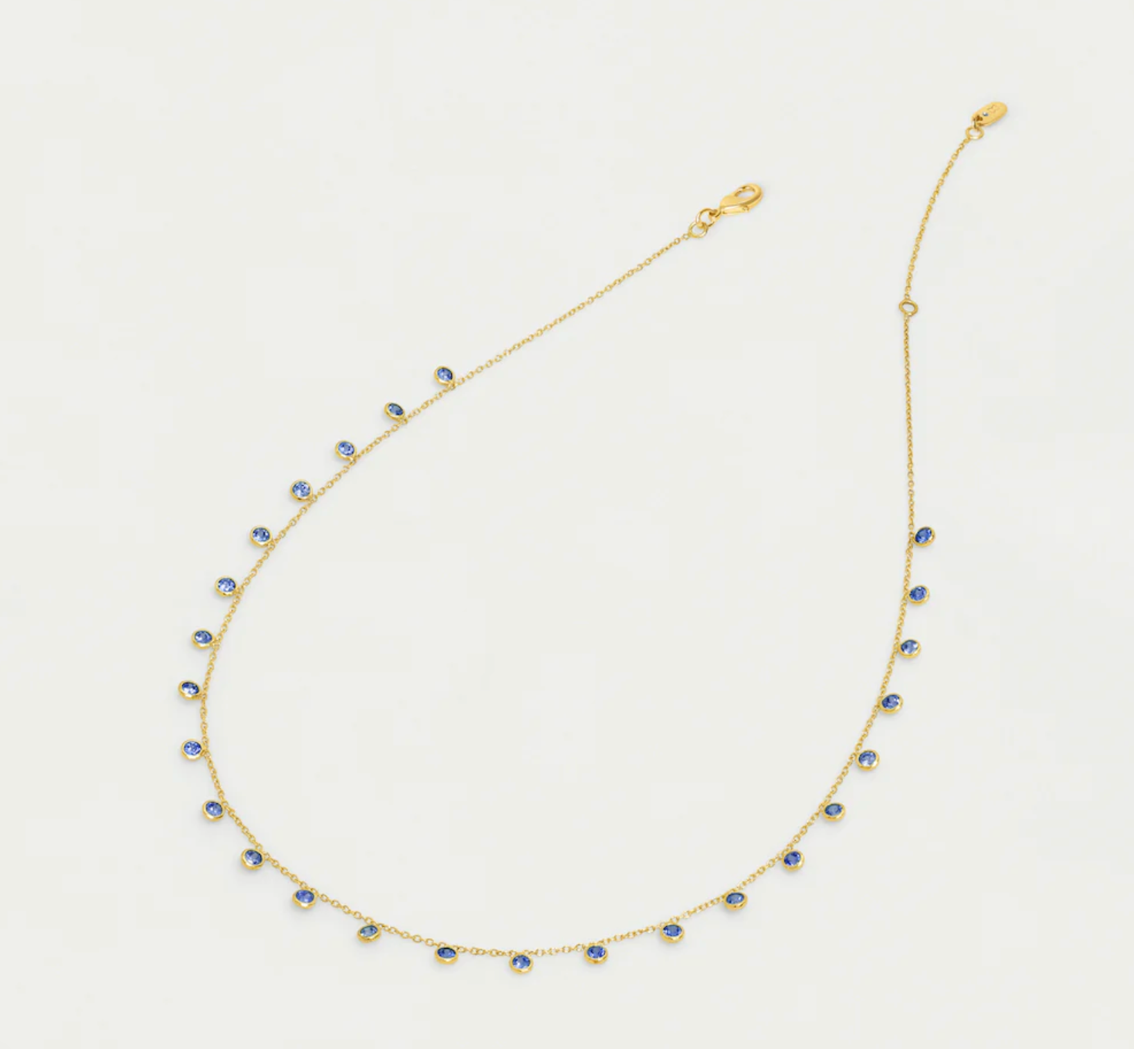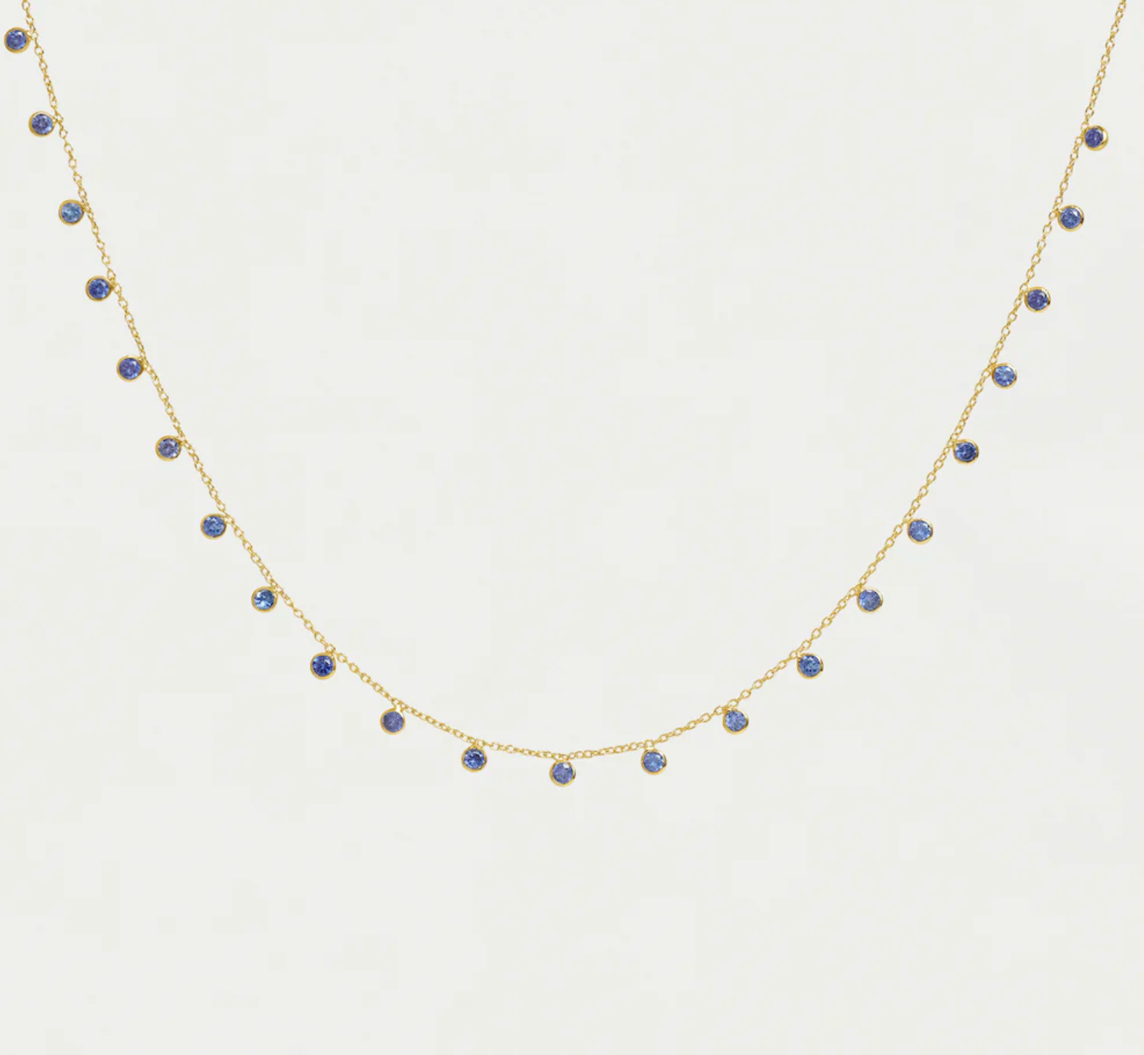 A slightly more substantial version of a longtime favorite, this elevated layering piece features small, suspended Tanzanite gemstones on a subtle gold chain.