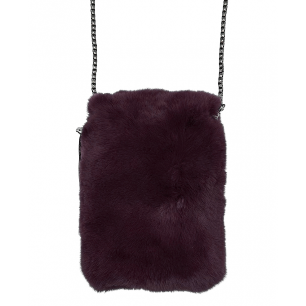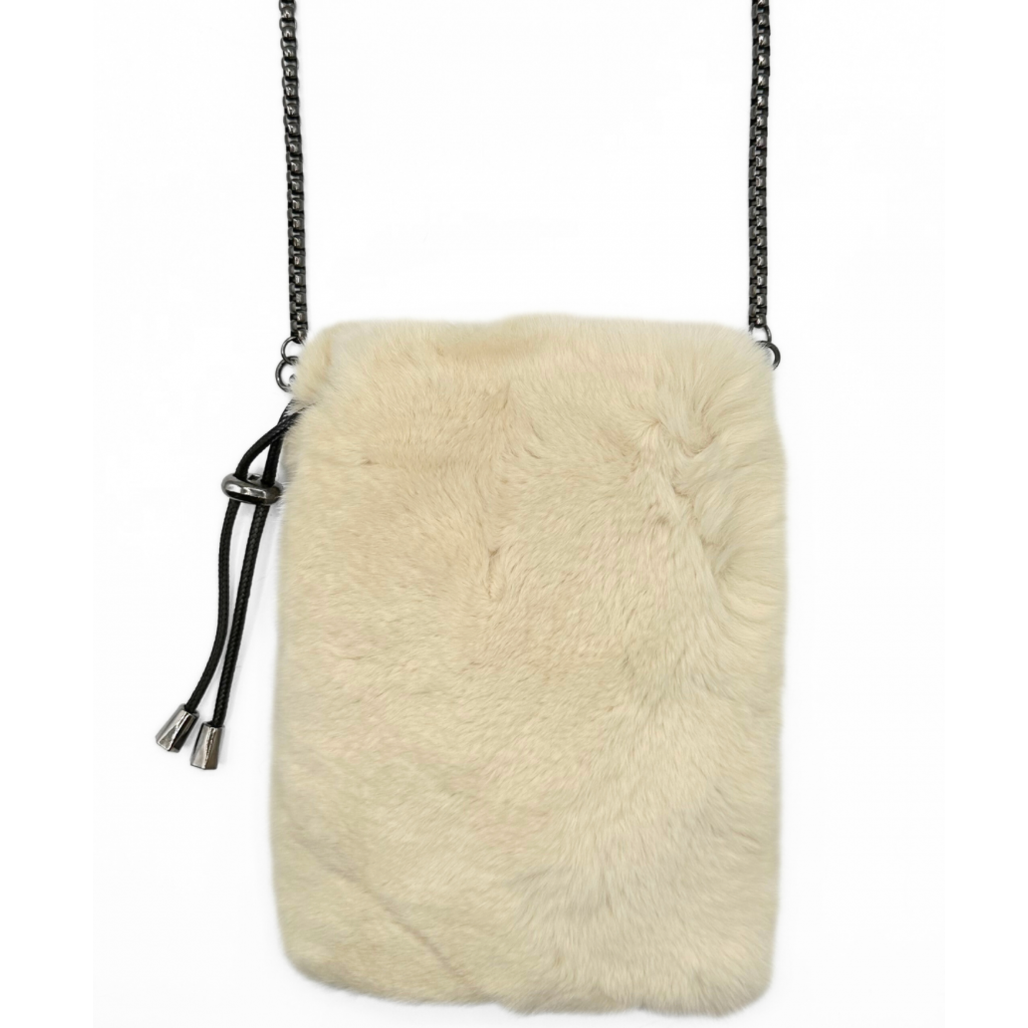 Genuine Rex Rabbit mobile cross body bagGun metal chain strapSnap closure