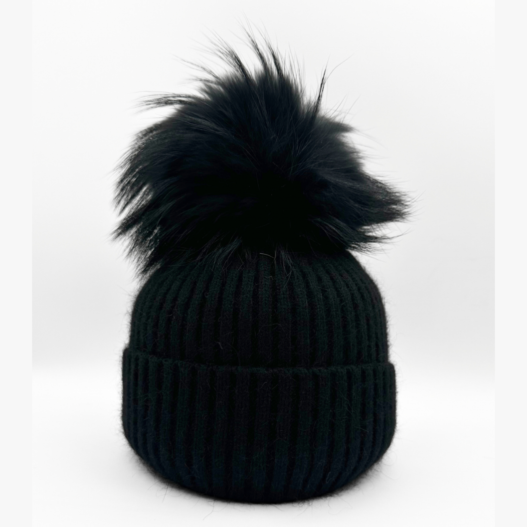 Genuine Wool and Angora Blend Ribbed Knit Hat