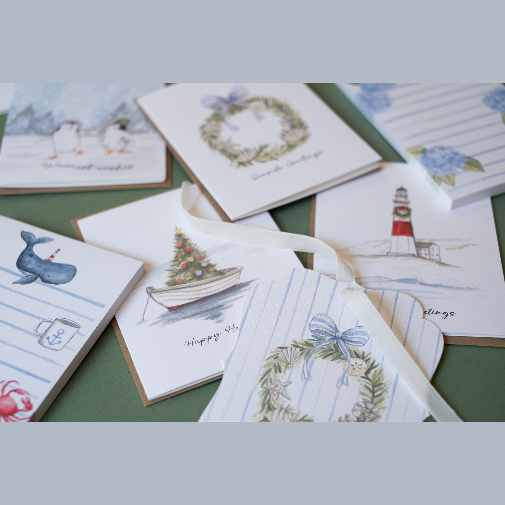 Nautical Whale Mermaid crab Notepad has 50 tear off sheets. Chipboard backing and packaged with a clear sleeve. Originally designed and handprinted using watercolor and fluid acrylic. The notebook is designed and made in the