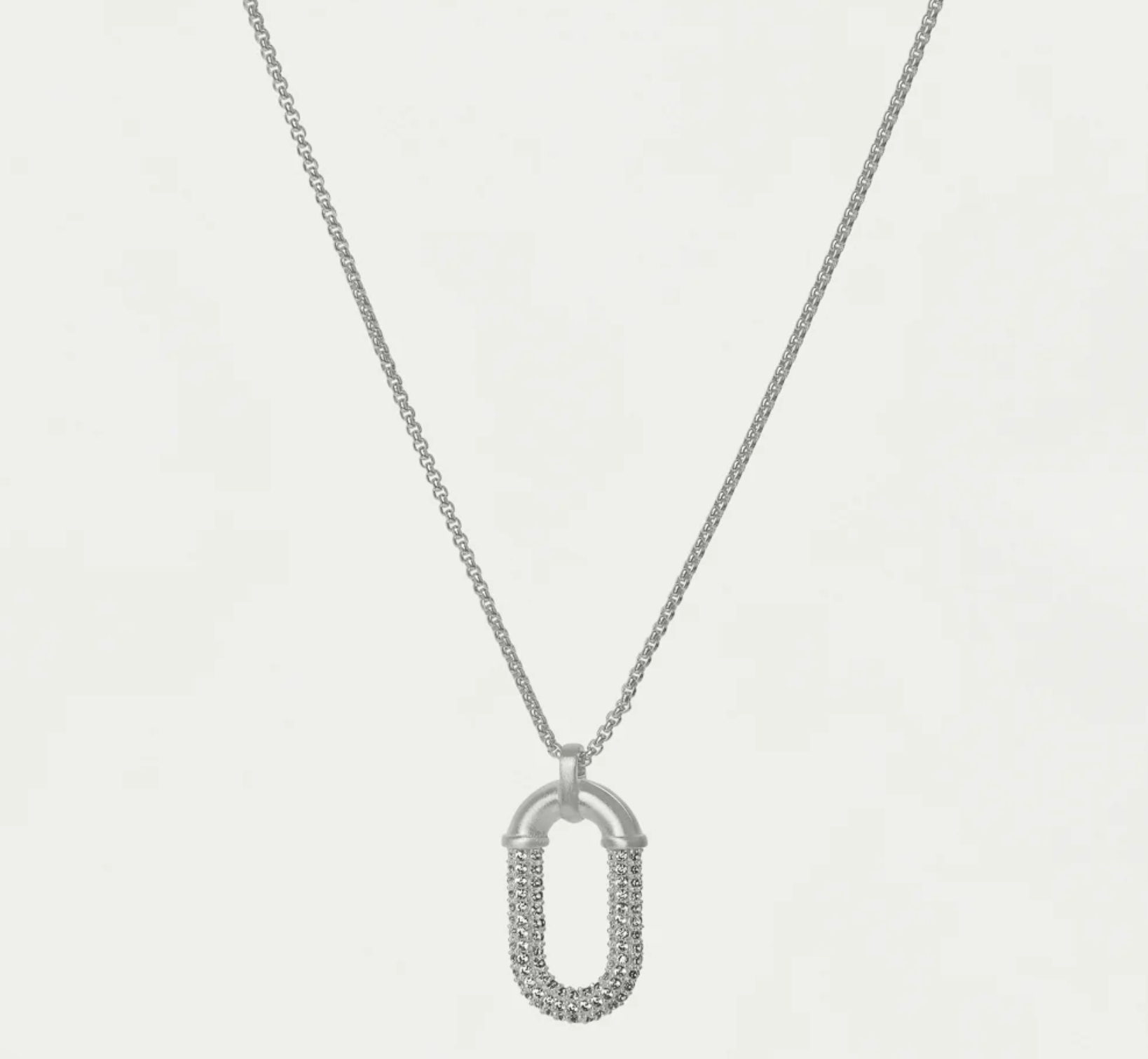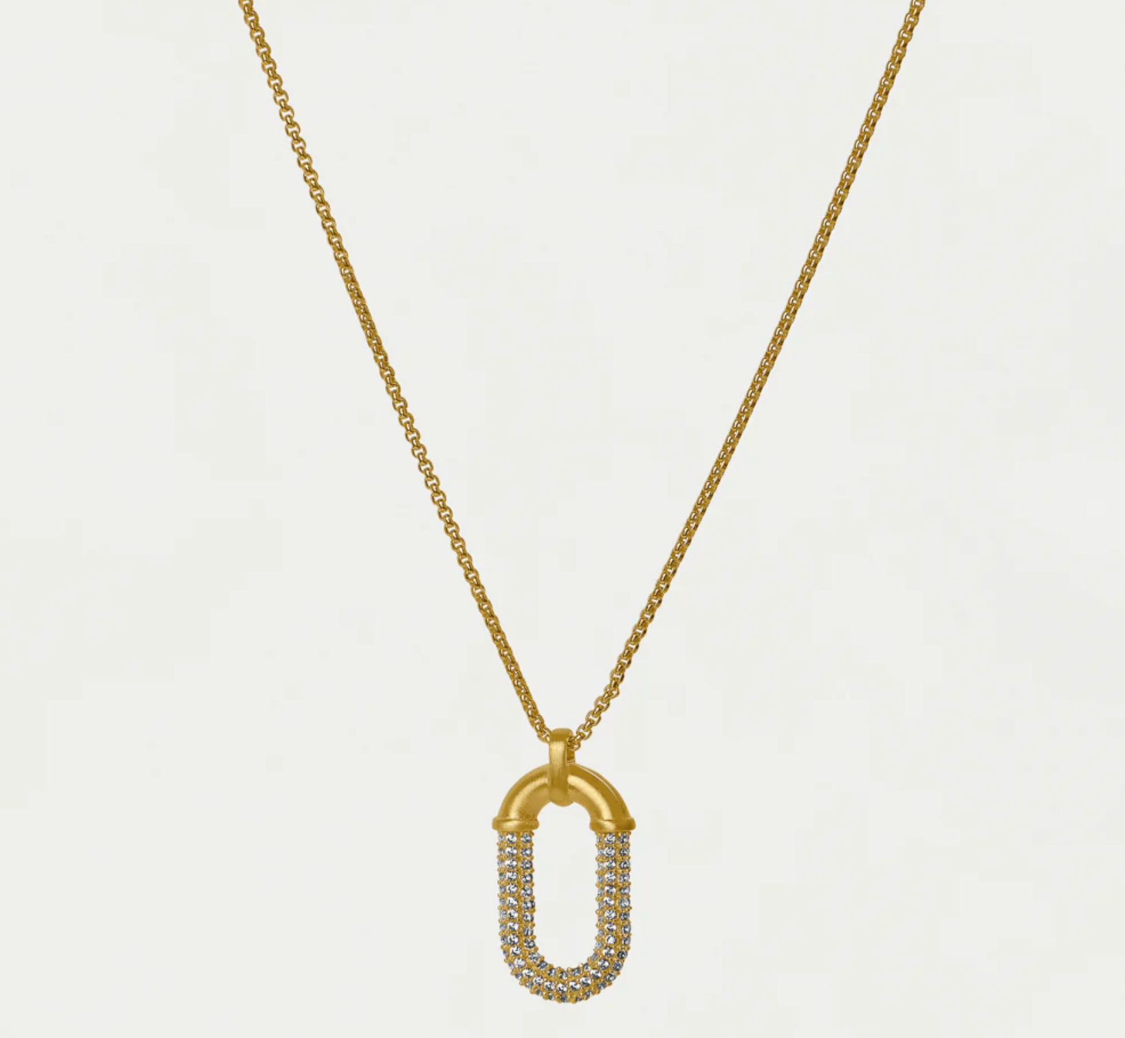 The piece designed to garner compliments: an industrial-inspired pendant comes balanced with petit pavé embellishment, while hanging from an everyday chain. This is one-and-done styling done right.