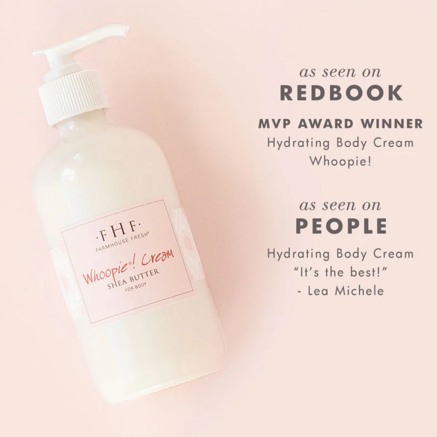 Water/Eau, Stearic Acid, Glycerin, Glycine Soja (Soybean) Oil, Glyceryl Stearate SE, Butyrospermum Parkii (Shea) Butter, Sorbitol, Octyldodecyl Myristate, Theobroma Cacao (Cocoa) Butter, Simmondsia Chinensis (Jojoba) Seed Oil, Aloe Barbadensis Leaf Juice, Cucumis Sativus (Cucumber) Fruit Extract, Cetyl Alcohol, Polysorbate 80, Fragrance*, Tocopheryl Acetate, Potassium Sorbate, Phenoxyethanol, Caprylyl Glycol *All Farmhouse Fresh fragrances are phthalate-free.